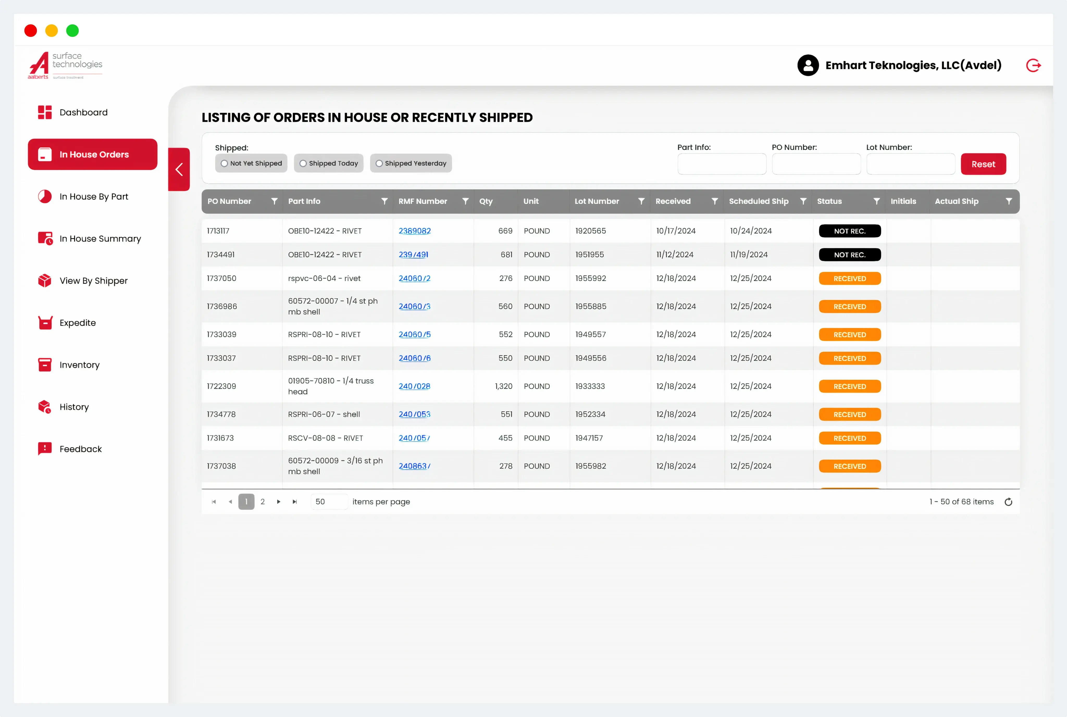 This project was to design a client portal where the client can view orders, request expedited and view data of different plants. The brief given to AllianceTek was to revamp the user interface of the platform and the underlying technology to make it easy to navigate, more functional and scalable. Moreover, the client also desired periodical updates from the ERP system, in future AllianceTek will incorporate new features on the invoice, and automation of work orders creation.